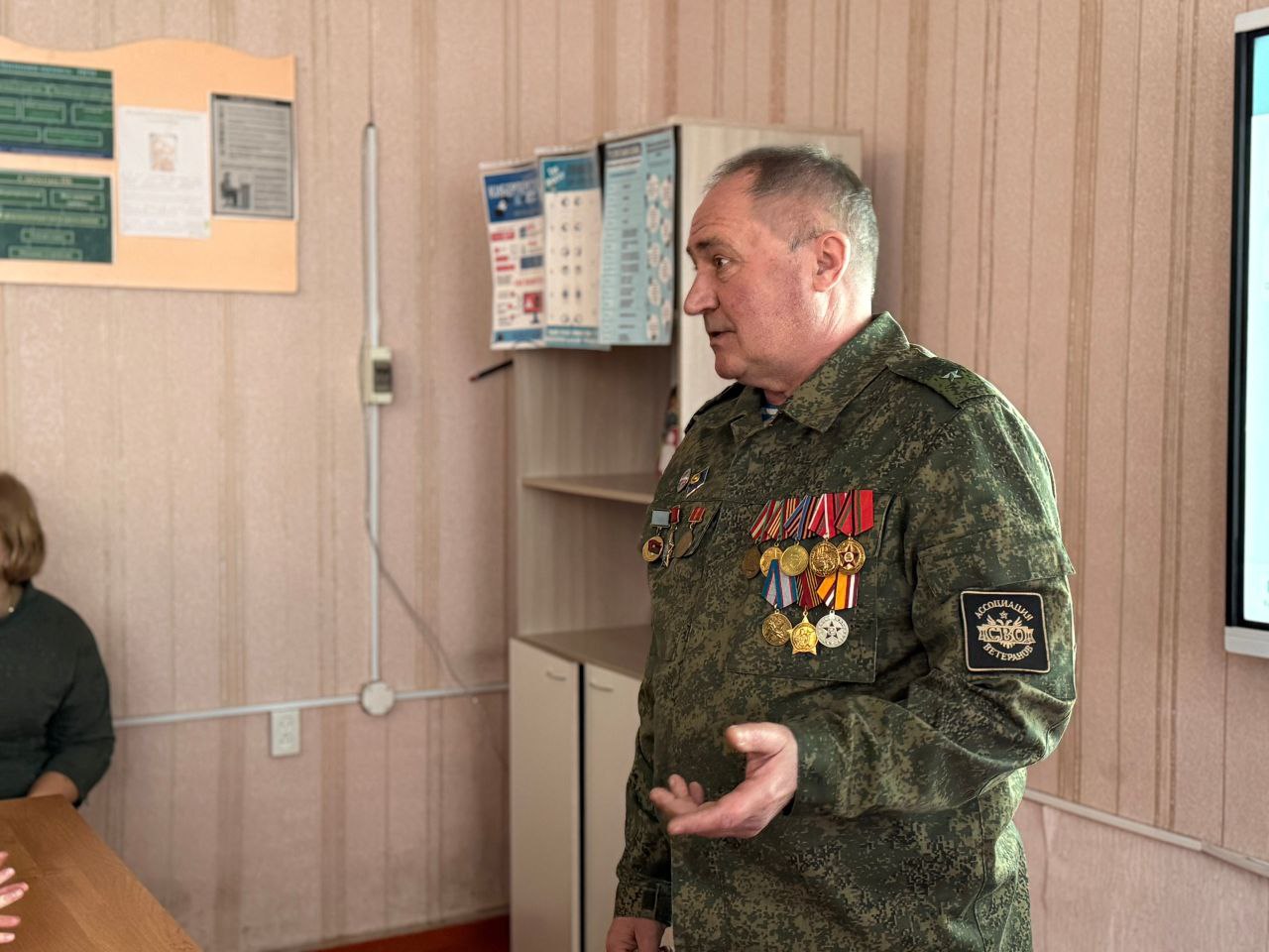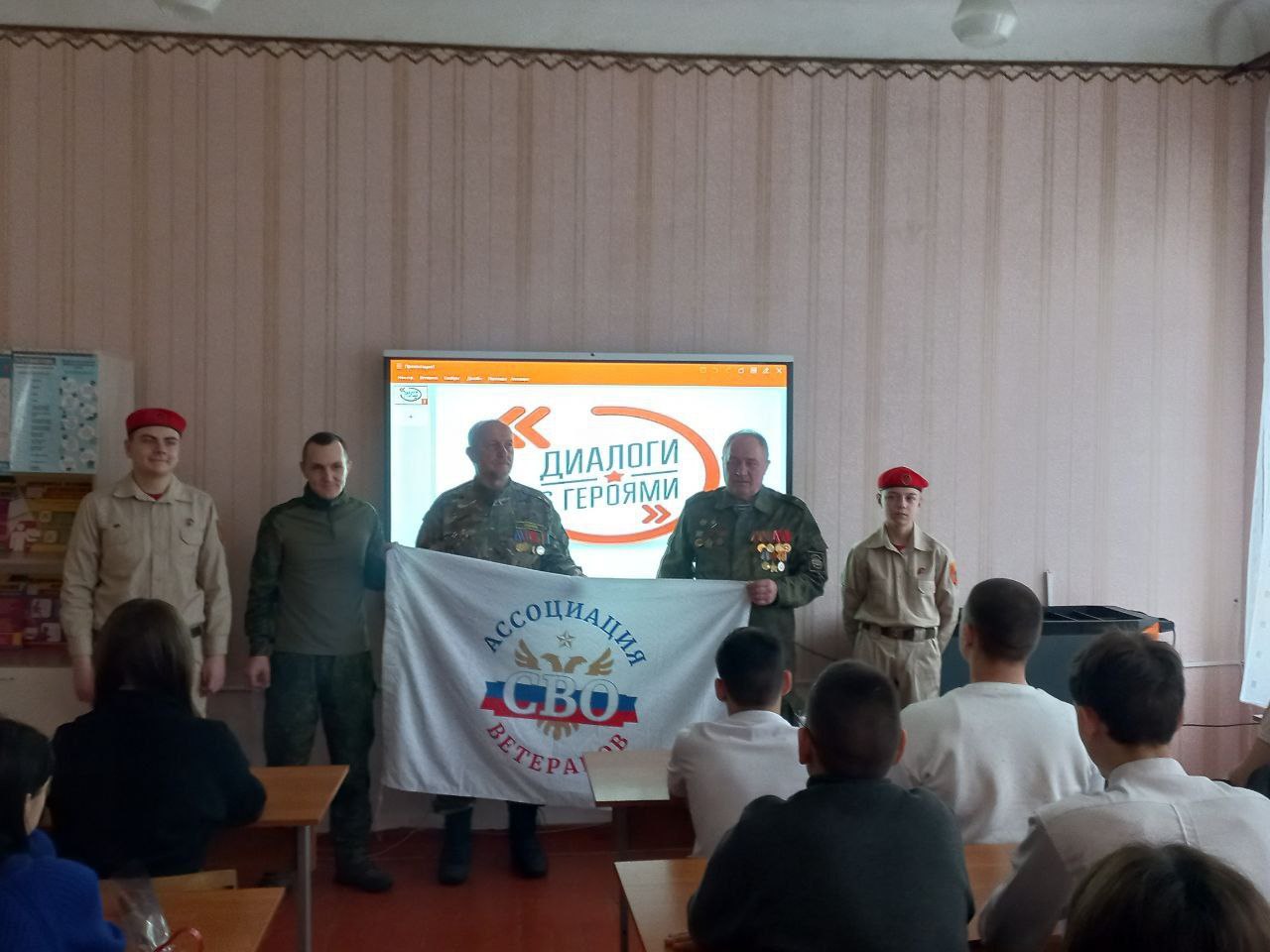Сегодня активисты Снежнянского отделения ДРОО ветеранов СВО Минченко Александр Николаевич, Бондаренко Александр Николаевич и Кузьменко Вадим Дмитриевич в Школе №2 провели урок мужества под названием «Диалог Героя». Разговор о героизме, воинском долге и защите Отечества — именно то, что особенно важно донести до подрастающего поколения в канун главного мужского праздника страны.